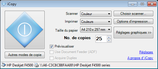 iCopy est un utilitaire pour Windows qui va vous permettre de photocopier à volonté et avec la même intuitivité qu’une photocopieuse physique de bureau. Il n’est pas nécessaire de disposer d’une imprimante multifonction, pour réaliser des copies noir et blanc ou couleurs de qualité. Pour cela, nous vous invitons à télécharger et installer iCopy un logiciel open source et gratuit. S’il ne les détecte pas (ce qui est rare), il suffit d’indiquer au logiciel iCopy le scanner et l’imprimante que vous avez normalement déjà installé. Ensuite, il ne reste plus qu’à déposer sur la vitre de votre scanner le document à photocopier et via l’interface du logiciel de sélectionner vos critères habituels, comme vous le feriez avec un photocopieuse classique ! Cela concerne, le nombre de pages à photocopier, le n&b ou la couleur, la taille de la page A4… iCopy dispose en outre d’autres réglages comme la luminosité, la résolution DPI du document (pour influer sur la qualité du tirage), l’aperçu avant impression… Pour les utilisateurs les plus pressés, on se contentera de déposer son document sur le scanner et de presser le bouton de photocopie !